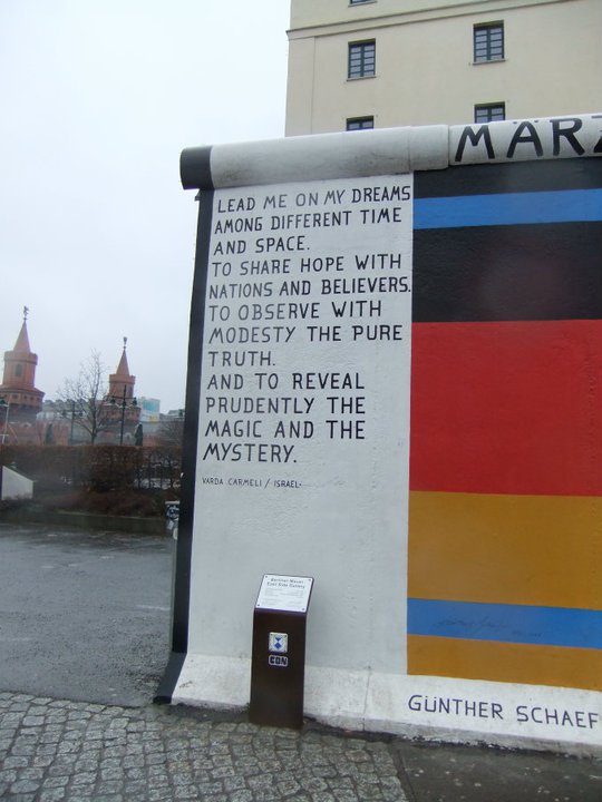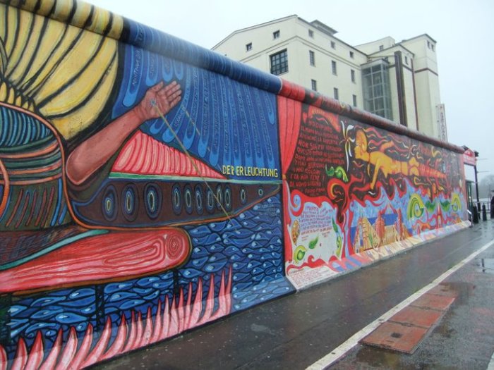 In città non si finisce mai di trovare angoli storici, angoli della memoria. Due di questi luoghi sono il Check Point Charlie e il tristemente famoso Muro di Berlino. Il primo fu l’unico punto di passaggio per gli stranieri tra Berlino Est e Berlino Ovest, simbolo di libertà e di separazione per tutti gli abitanti dell’ex DDR. Oggi non si vedono più i cancelli e il filo spinato; è rimasta invece a testimonianza una copia della cabina da dove si effettuavano i controlli e la famosa scritta “State lasciando il settore americano!”. Chiuso nel 1990 con una formale cerimonia è diventato una delle attrattive turistiche più interessanti insieme al Museo Haus am Check Point Charlie, allestito in una vecchia torre di controllo dove sono custoditi cimeli e testimonianze del periodo di costruzione del Muro e dei successivi tentativi di fuga verso la libertà. Il Muro di Berlino, o meglio, quello che ne rimane, è di impatto emotivo molto forte. Quello che rappresenta è difficile e triste da immaginare. La caduta del muro nel 1989 è stata il simbolo vero e proprio della riunificazione, tanto attesa ma a tratti anche temuta. Oggi rimangono visibili solo alcune parti, molte delle quali decorate. Uno di questi esempi è la East Side Gallery, un chilometro e trecento metri di muro accanto alla Sprea, con dipinti coloratissimi e graffiti che rappresentano l’idea di pace. Centinaia di artisti provenienti da ogni parte del mondo hanno contribuito a questa vera e propria opera d’arte.