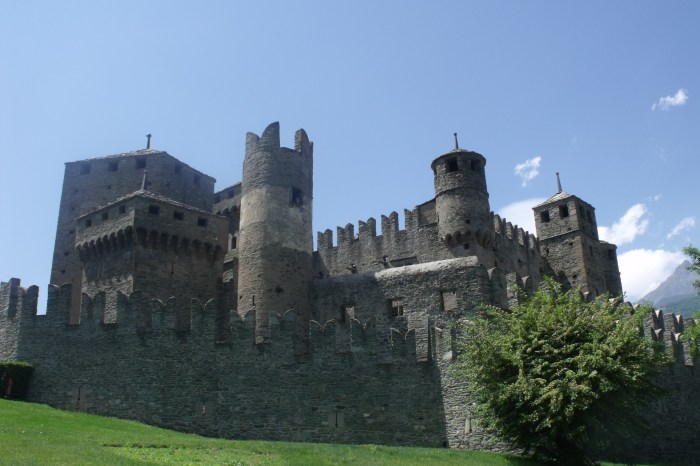L’altro castello che mi ha lasciata davvero a bocca aperta è quello di Fenis, da non perdere assolutamente. E’ conosciuto anche all’estero ed invidiato ovunque, per la sua bellezza ed imponenza. Le grandi torri cilindriche, la cinta muraria e i torrioni fanno pensare ad un edificio a scopo difensivo, quando in realtà è stato costruito come residenza della famiglia Challant, non subendo mai attacchi. Anche qui ogni stanza ha un grande camino e soffitti molto alti. Le guide qui sono ultra preparate e la visita al castello è molto emozionante. Sembra di rivivere i momenti della vita di questa nobile famiglia.