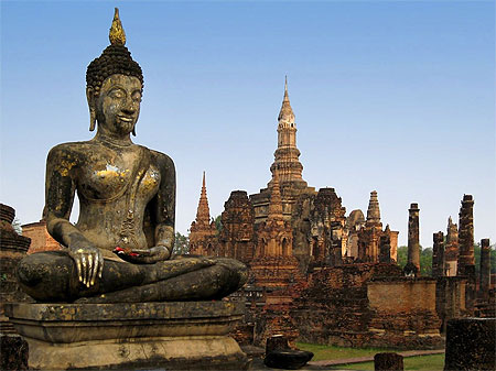 Proseguendo il tour, si arriva a Sukhothai, il primo territorio indipendente thailandese, con i suoi templi e monumenti che sono stati conservati nel complesso storico archeologico, dichiarato patrimonio dell’Umanità dall’Unesco. Il Parco archeologico si trova a 12 chilometri dal centro ed esiste la possibilità di noleggiare una bicicletta per girare tra le bellissime rovine senza perderne una. Questo luogo stupisce ed ammalia con i suoi palazzi e templi buddhisti, con le porte, le mura difensive, le dighe, gli stagni e i laghetti. Al centro del complesso si trova il Palazzo Reale, formato dalla residenza e dal santuario. Il re qui, nel passato, conduceva affari di stato nei giorni feriali, mentre nei giorni festivi un monaco svolgeva le pratiche religiose. Il Wat Mahathat, poco distante, è il santuario reale e tempio più grande della città con la stupa a forma di campana, alla cui base si trovano discepoli buddhisti seduti intorno al piedistallo dove si ergono le statue del Buddha.