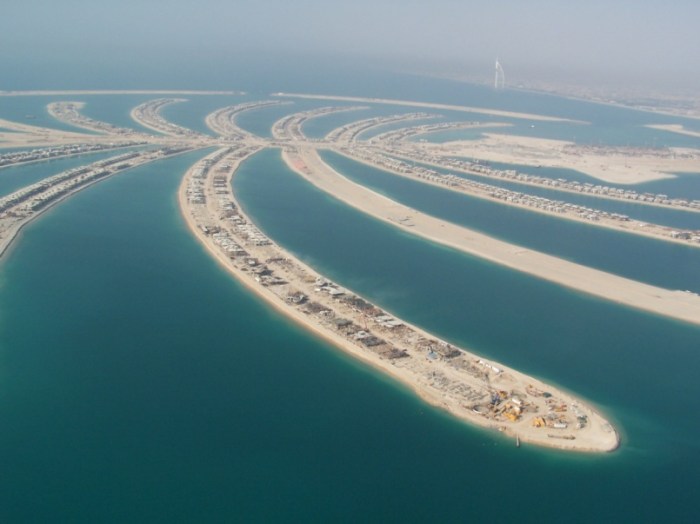 In questa città sempre in crescita e in trasformazione, potevano mancare altre costruzioni bizzarre? Ovviamente no. Si parla delle Palm Islands, le tre isole artificiali: Palm Jumeirah e Palm Jebel Ali, già realizzate e in fase d’ampliamento, e Palm Deira, ancora in fase di lavorazione. Queste isole racchiudono interi centri residenziali, con ville da sogno e molto altro. The World, invece, è un progetto ancora in evoluzione e con le sue 300 isole artificiali, rappresentanti un facsimile in miniatura del nostro mondo, ha avuto un arresto momentaneo a causa di alcuni rapporti negativi sulla sabbia, che sembrerebbe affondare.