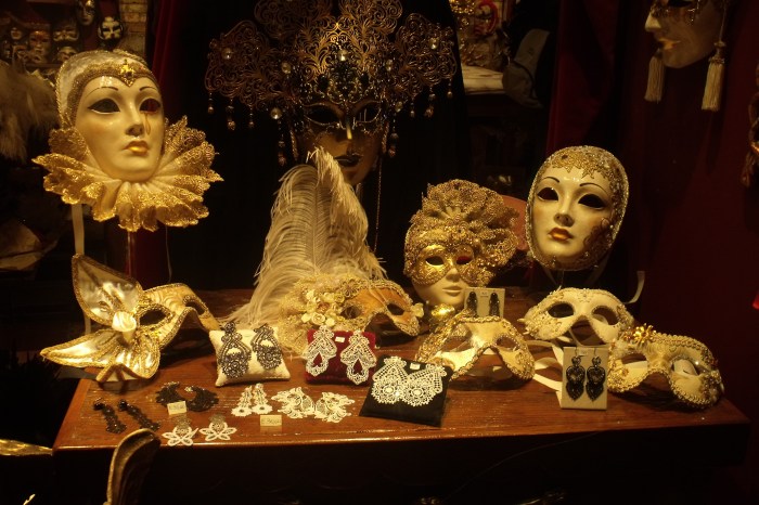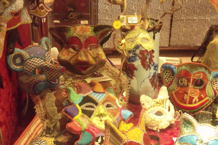 Quello che mi ha colpito di Venezia è il susseguirsi di negozi che vendono maschere di tutti i tipi, anche quelle che non sono tipiche del posto. Diffidare sempre delle imitazioni! Sono un bel ricordo, ma solo se autentiche!!! Non per forza bisogna spendere molto, ce ne sono anche di molto carine ma di piccole dimensioni.