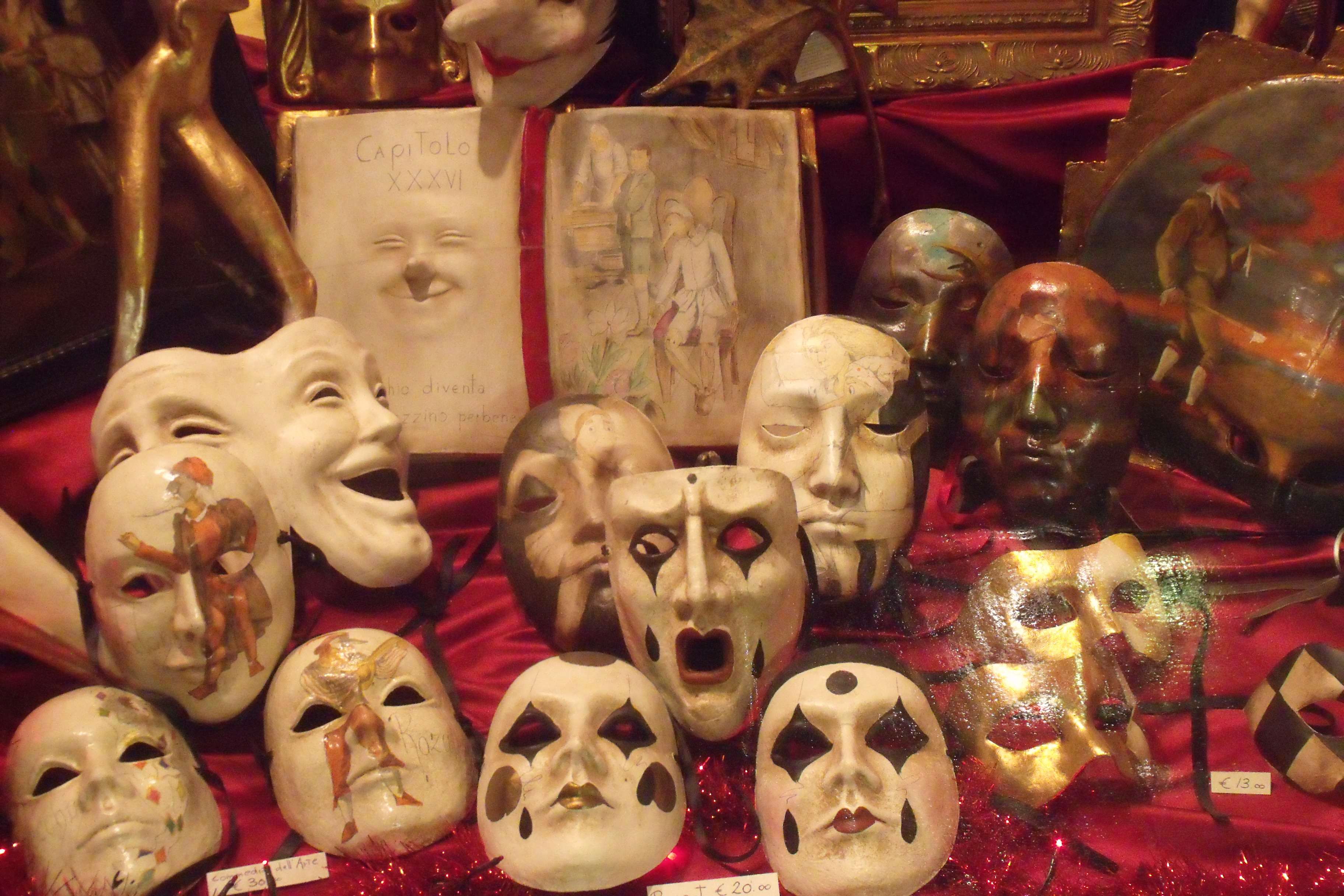 Quello che mi ha colpito di Venezia è il susseguirsi di negozi che vendono maschere di tutti i tipi, anche quelle che non sono tipiche del posto. Diffidare sempre delle imitazioni! Sono un bel ricordo, ma solo se autentiche!!! Non per forza bisogna spendere molto, ce ne sono anche di molto carine ma di piccole dimensioni.