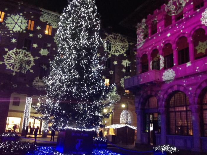 Sotto queste feste, ormai passate, l’ho ammirata e amata, grazie anche alle sue bellissime luminarie e ai suoi giochi di luci e suoni in Piazza Duomo. La piazza tappezzata di colori è stata davvero emozionante e devo dire che ogni anno è sempre meglio. Fiocchi di neve bianchi su sfondo blu e fucsia, l’albero di Natale maestoso con le sue luci piccole e concentratissime.
