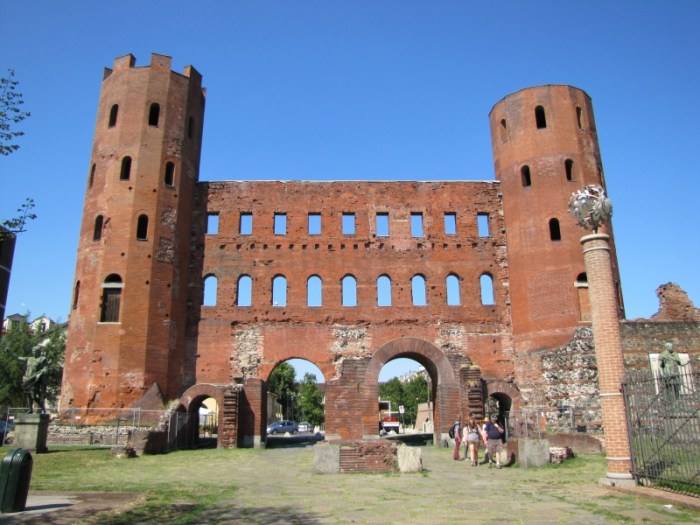 Di fianco al Duomo un’altra opera magnifica: la Porta Palatina. Qui si possono vedere i resti delle mura romane oltre appunto alla costruzione vera e propria, con due imponenti torri che sembrano fare da guardia alla città intera.