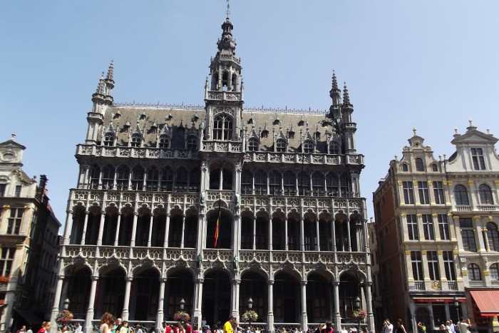 Prima di arrivare alla famosa e bellissima Grand Place, ci si imbatte nella Cattedrale di Saints Michel et Gudule, la più importante dell’intero Belgio. Il gotico del Brabante, qui è rappresentato tutto. All’esterno somiglia molto a Notre Dame de Paris, che poi, lo stile è quello!!! Le torri gemelle della facciata, l’ingresso trionfale, il portale riccamente decorato, fanno sì che sia una delle più belle chiese d’Europa. La splendida vetrata del Giudizio Universale lascia senza parole. L’interno è davvero spettacolare, con un pulpito in legno intarsiato e varie statue.