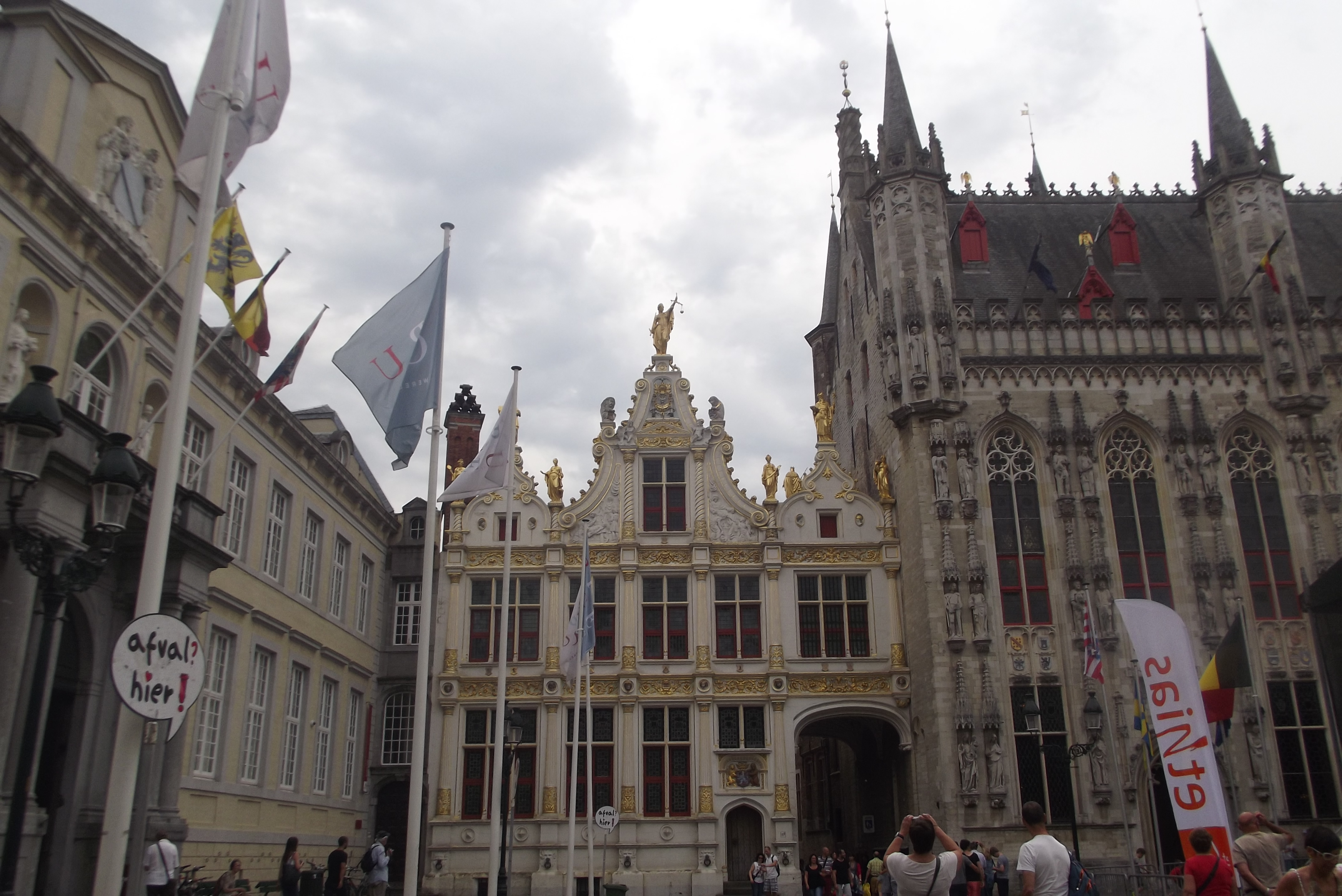 Terza tappa del viaggio è Bruges, incantevole cittadina medievale belga. Pittoreschi canali ed eleganti edifici, molti con facciate di color rosso. Qui abbiamo visto il cielo nuvoloso, che però dava un tocco magico alla giornata e alle case del centro. Le vie sono molto curate, ordinate, pulite. I canali regalano un senso di relax, di pace assoluta. Le imbarcazioni scivolano lente e permettono di visitare la città da un’altra angolazione. E’ bello passeggiare a piedi, godersi ogni angolo e ogni singolo momumento. Il Belfort, o torre campanaria, è senz’altro uno dei simboli di Bruges; torre ottagonale con la facciara in mattoni, slanciata ed estremamente elegante. Nella piazza principale, o Markt, fanno da cornice le belle case medievali. Qui ogni domenica tra l’altro si tiene il mercato. Peccato non esserci passati proprio in quel giorno. La sensazione di tranquillità pervade anche in questa piazza gremita di gente. Cavalli e carrozze solcano le vie vicine, permettendo una visita particolare del centro storico. Il Municipio (Stadhuis) della città, invece, appena dietro il Markt, è uno dei più antichi edifici del Beglio e all’interno accoglie una bella sala gotica famosa per il suo soffitto a volta.