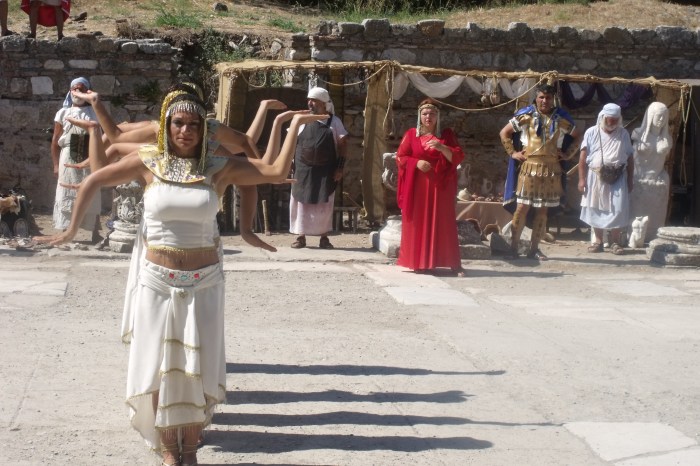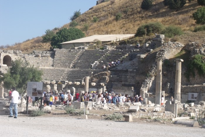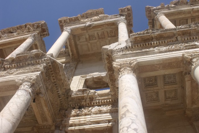 Questa zona ha attirato me e mio marito anche per la storia e il fascino delle rovine archeologiche della vicina Efeso. Camminare sulle strade dell’antica Efeso, su queste pietre secolari, è davvero emozionante. Passi ravvicinati e curiosi su un percorso battuto dalla storia. Unico!!! Gli occhi non sanno cosa guardare, talmente tante sono le meraviglie architettoniche arrivate ai giorni nostri. Il Tempio di Artemide per esempio era tra le sette meraviglie del mondo antico; oggi purtroppo non rimane che una misera colonna. Vogliamo però mettere l’imponenza del Teatro, i cui scalini rendono ancora oggi omaggio alla grandezza di un popolo. Salire pian piano in alto e godersi il panorama, immaginandosi le antiche rappresentazioni, non ha prezzo, assolutamente! Può capitare, con un po’ di fortuna, di assistere ad una dimostrazione di spettacoli, bella perché riporta all’immaginazione di quello che poteva essere secoli fa. L’edificio che colpisce molto è la Biblioteca di Celso, ancora ben conservata e fotografatissima dai turisti. Inutile spiegare il perché, dopo così tanta magnificenza. Tra una camminata e l’altra mi ricordo il caldo, anche se non asfissiante, e la presenza di gatti, che qui in Turchia sembrano sempre essere propensi ad una coccola, una carezza… Io adoro i gatti, quindi questo è decisamente il mio posto!!!