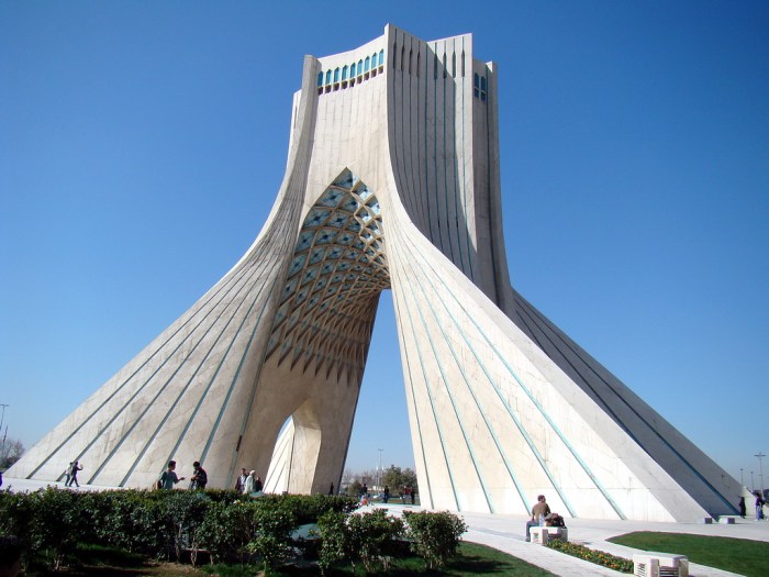 Il Monumento Azadi, a ovest di Teheran, colpisce per la sua forma a Y rovesciata e perchè sta quasi a simboleggiare una porta d’ingresso alla città. Le sue pareti sono ricoperte di pietre bianche e la piazza intorno è verde, bellissima, con un grazioso laghetto. Purtroppo le strade trafficate intorno lo isolano un po’ dalla sua magia, ma comunque è molto interessante la sua visita. Dalla terrazza poi si può godere di una vista mozzafiato sulla città e sui suoi svettanti minareti.