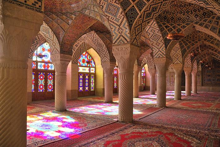 A Shiraz le meraviglie architettoniche non finiscono mai di stupire… Questo è il caso della Moschea Nasir Ol Molk, famosa per le sue vetrate colorate che si riflettono stupendamente nei suoi interni, con l’aiuto dei raggi del sole. Sulle piastrelle sono rappresentati diversi disegni geometrici, all’esterno le cupole sono spettacolari. Famosa anche come Moschea Rosa… per le sue piastrelle di questo colore. E’ bello fotografarle in diversi momenti della giornata, con diverse tonalità date dai riflessi delle vetrate. E’ come vivere in un sogno!