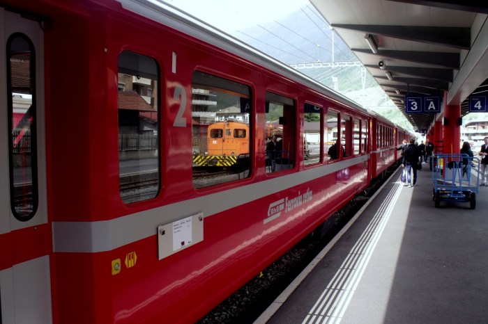 Da Tirano il trenino comincia ad inerpicarsi, appena superato un viadotto elicoidale mozzafiato, da cui fare le foto ferme è quasi impossibile. Si prende velocità, per salire senza cremagliera, questo va specificato, dai 429 metri di Tirano ai 2.253 metri dell’Ospizio Bernina, per poi ridiscendere nella vallata dell’Alta Engadina e quindi nella moderna stazione di St. Moritz.