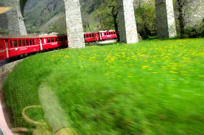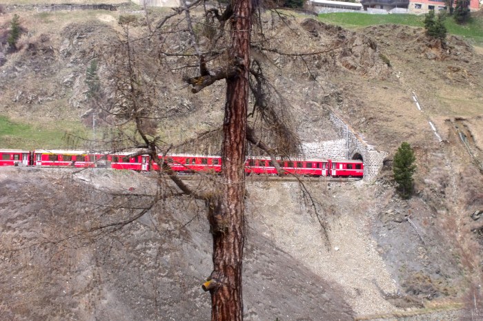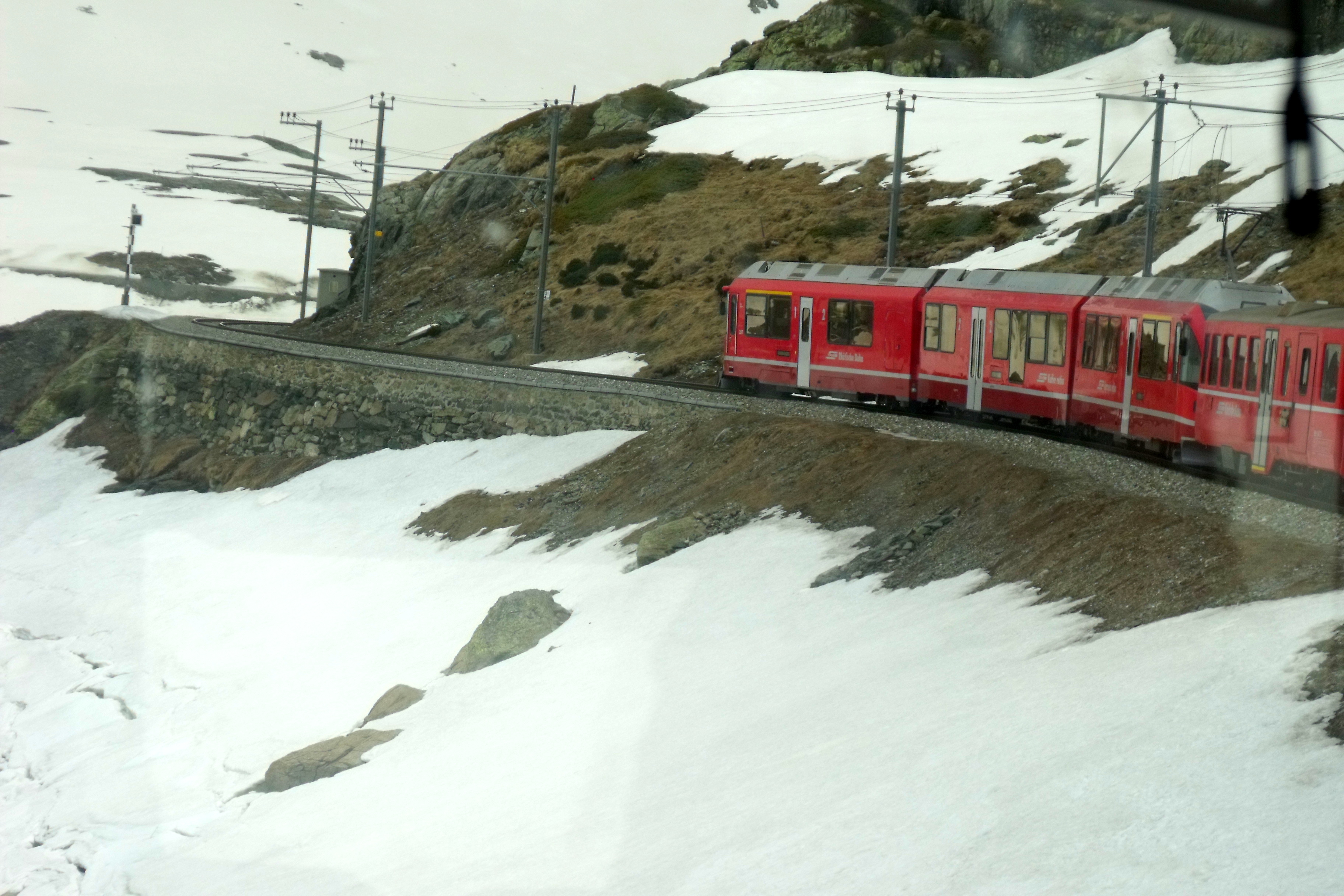 Il Trenino Rosso del Bernina, da Tirano a St. Moritz, attraverso paesaggi stupendi. Cosa si può volere di più da una gita giornaliera in piena primavera?
