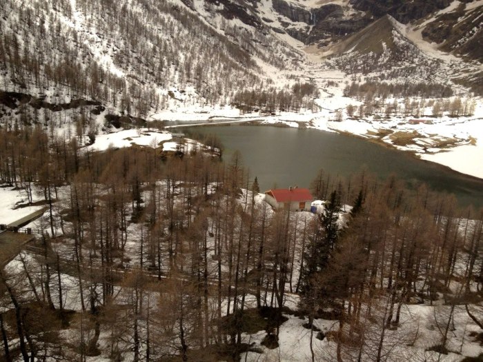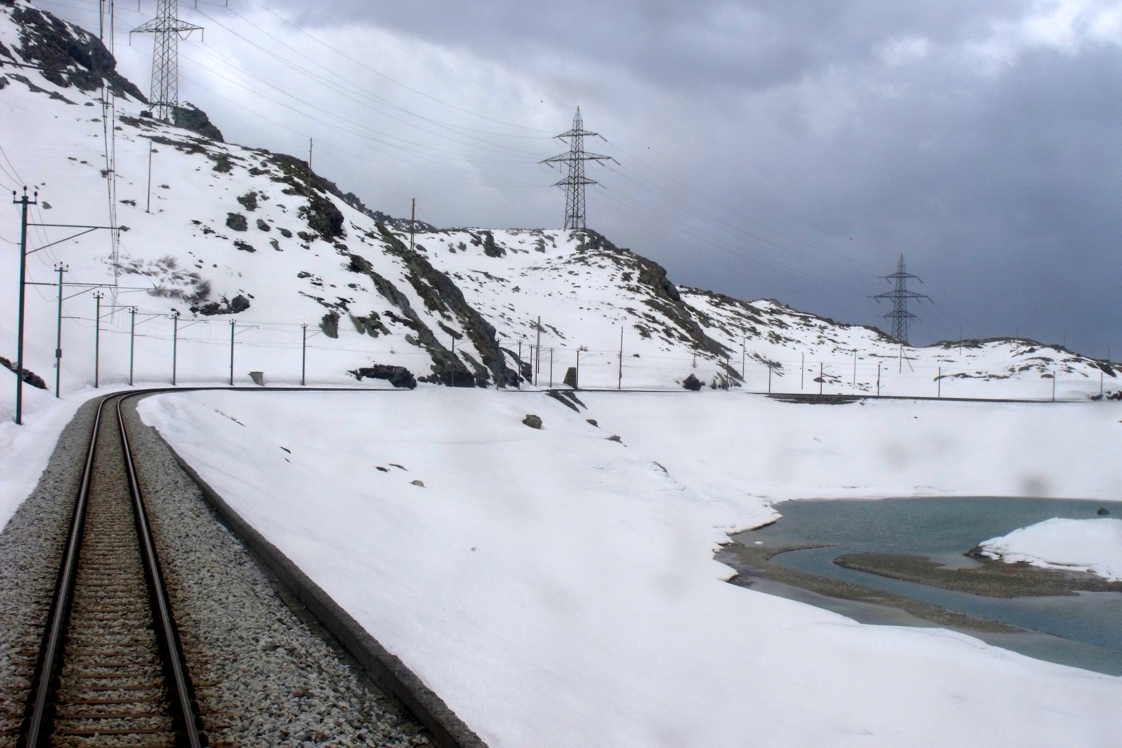 Si arriva presto a Poschiavo, con il suo bellissimo laghetto, bello sia con il freddo, che con il caldo, a mio parere. Questo bel paese ha davvero tutto quello che serve per incantare i passeggeri come noi, seduti a guardare, o in piedi a fotografare. Io di solito sono quella in piedi a fotografare, infatti qui come si può non scattare una successione di immagini bellissime!!! Si sale ancora, passano gallerie, viadotti da vertigine, laghetti, alberi fitti… In treno si chiacchiera, ci si diverte, non manca nulla. L’aria si fa sempre più fredda perchè ci si avvicina a quota 2.000 metri… Ecco la neve, quella protagonista incontrastata di questi angoli di montagna, che anche in primavera ed estate ammalia con il bianco delle vette e l’aria pungente. Davanti ai finestrini ad un certo punto appare il Lago Bianco, una diga ad alta quota ai piedi del ghiacciaio Piz Cambrena. Poco distante il Lago Nero, di origine naturale ed infatti chiamato così per le sue acque più scure, tipiche dei laghetti di montagna circondati dalla neve quasi perenne. La stazione Ospizio Bernina è davvero particolare, con molte fotografie d’epoca che ricordano la storia del luogo e di questa meravigliosa linea ferroviaria a scartamento ridotto.