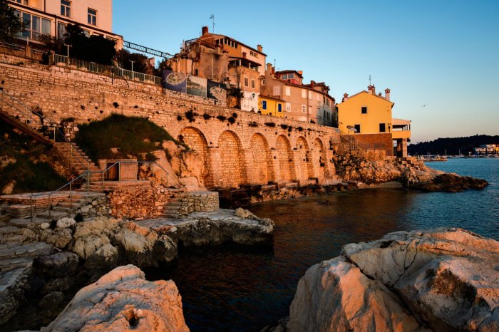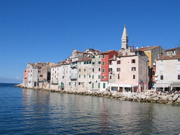 Arrivati a Rovigno (Rovinj), gli occhi sono pronti ad ammirare un’altra meraviglia, costruita dall’uomo in mezzo a una natura particolarmente clemente. Il centro storico è spettacolare ed incastonato su un’isoletta protetta dalle mure medievali. Case strette, stradine con la sorpresa dei cortili, fontane, piazzette gremite di gente indaffarata a parlare, fotografare, camminare. Un posto unico da visitare!!!Alcune case sembrano tuffarsi direttamente nel mare, mescolandosi nel suo blu profondo. Sulla piazza principale della città sorge una bellissima Torre dell’Orologio. L’orologio è ovviamente la maggiore attrazione ed è veramente stupefacente, con il suo leone veneziano sulle pareti rosa della costruzione.