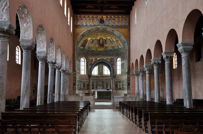 Come ogni città e ogni paese istriano, le chiese hanno una certa importanza. La Basilica Eufrasiana in particolare, è davvero bellissima e da visitare assolutamente. La chiesa fu costruita senza badare a spese e oggi ne rimane proprio un grandioso esempio. L’abside e il coro sono decorati con mosaici perfettamente conservati e spettacolarmente colorati, fatti di marmo, pietre dure e madreperla. Non per niente questa bellezza architettonica è stata iscritta nel Patrimonio dell’Umanità Unesco. Il campanile della basilica domina la città e la laguna circostante, quasi come per imporsi come punto di orientamento. Salire sul campanile è davvero una bella esperienza, per ammirare la città, i suoi tetti, i suoi angoli verdi e il meraviglioso paesaggio nei dintorni, tra mare e terra, tra spiagge e vegetazione.