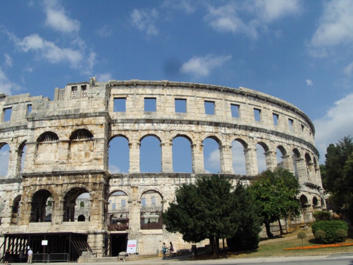 Proseguiamo dunque per Pola (Pula), altra meraviglia!!! Una destinazione per chi ama le bellezze storiche e culturali. Sicuramente Pola è famosa per la sua Arena, uno degli anfiteatri meglio conservati di tutto il mondo. Non per niente oggi è ancora usata nelle sere estive per spettacoli teatrali e concerti. Nel passato invece veniva utilizzata per combattimenti navali e combattimenti tra gladiatori. Qui riveivere attimi di storia è veramente facile, tramite le sue testimonianze e anche un po’ di immaginazione che non guasta mai.
