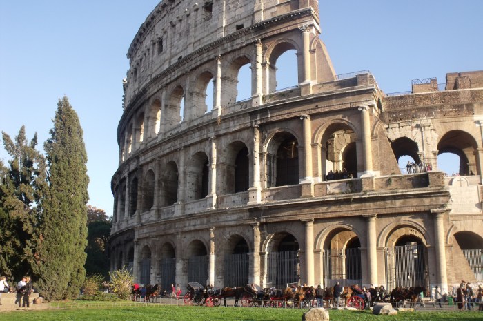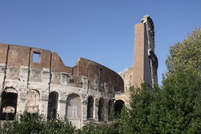 L’IMPONENZA DEL COLOSSEO. Il Colosseo, uno dei monumenti più importanti, sorge lì, davanti a noi, con i suoi secoli di storia. Bellissimo, maestoso, a testimonianza dei fasti dell’epoca romana. Non per niente è posizionato nel cuore archeologico della città. Qui nel passato i gladiatori combattevano e ancora oggi non è difficile immaginare lo spettacolo. Si calpestano pietre passate alla storia, si torna indietro nel tempo. E’ entusiasmante vederlo lì, dove ora scorrono strade e auto, pensando che è potuto arrivare così intatto ai giorni nostri, grazie a varie opere di manutenzione.