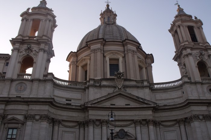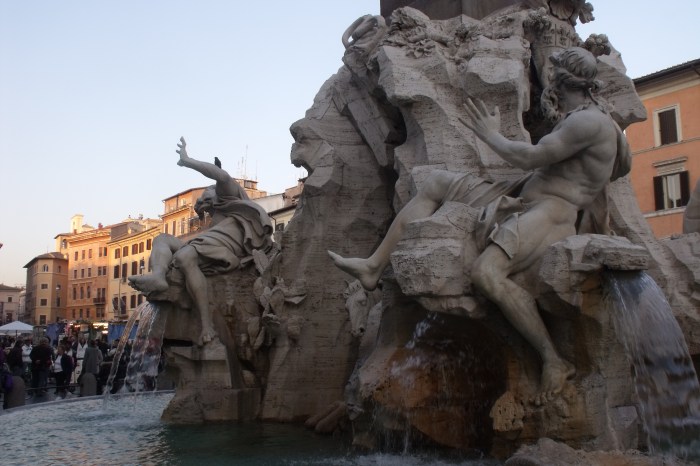 FERMARSI AD AMMIRARE IL VIAVAI DI GENTE IN PIAZZA NAVONA. Si arriva in Piazza Navona percorrendo vie caratteristiche, belle e ricche di palazzi con facciate semplici ma allo stesso tempo eleganti. Forse la più elegante e movimentata piazza romana, punto di ritrovo per romani e per turisti. Molti bar la circondano e rendono ancora più viva e spettacolare la vista sulle fontane e sulla Chiesa di Sant’Agnese. Non c’è da meravigliarsi che qui si tengano spesso vari mercatini, tra qui quello bellissimo di Natale. Anche in altri periodi dell’anno si possono trovare, insieme a manifestazioni di vario tipo. Una piazza imperdibile davvero, per potersi assaporare la vera e autentica vita romana.