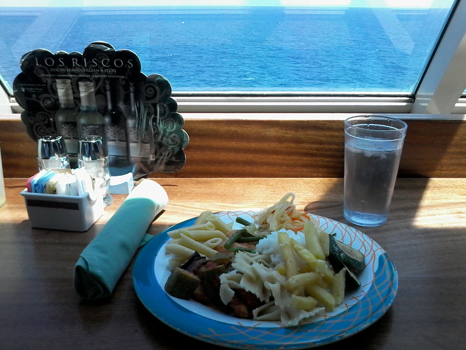 Arriva l’ora di pranzo e il Windjammer è sempre aperto… Un buffet ricco di insalate, primi, secondi, contorni e dolci. Ecco a cosa serve la palestra al mattino… Non si può rinunciare al gusto in vacanza, sarebbe un reato. Si prende posto all’interno oppure all’esterno in zona piscina, per mangiare contemplando il mare e le coste. Abbiamo visto da lontano molti Paesi: la nostra Italia, la Croazia, il Montenegro, l’Albania, la Grecia… Ogni volta la mente fantastica sull’orizzonte, sulla vita vicina alla nostra, ma allo stesso tempo lontana. Tra una forchettata e l’altra, la fantasia si fa sempre più viva. Sul buffet direi solo due parole: ottimo e abbondante!!!