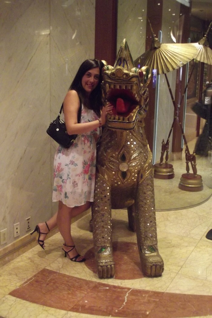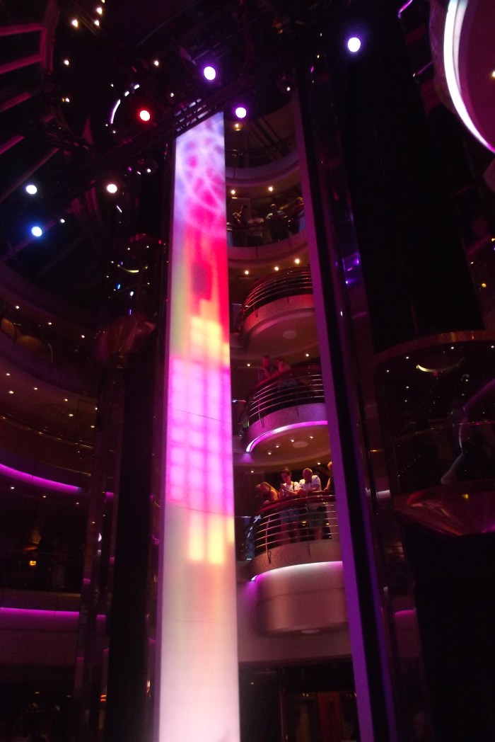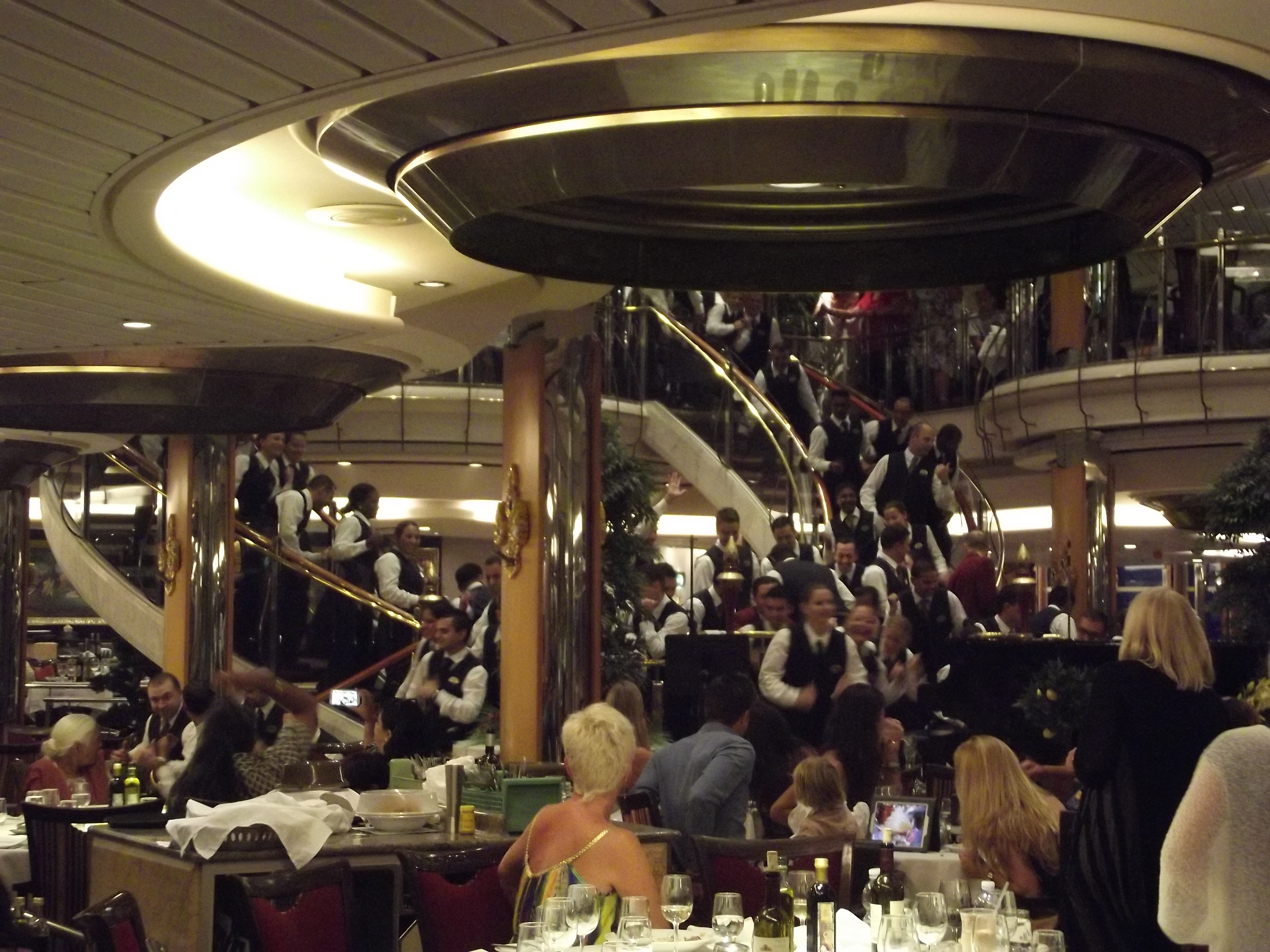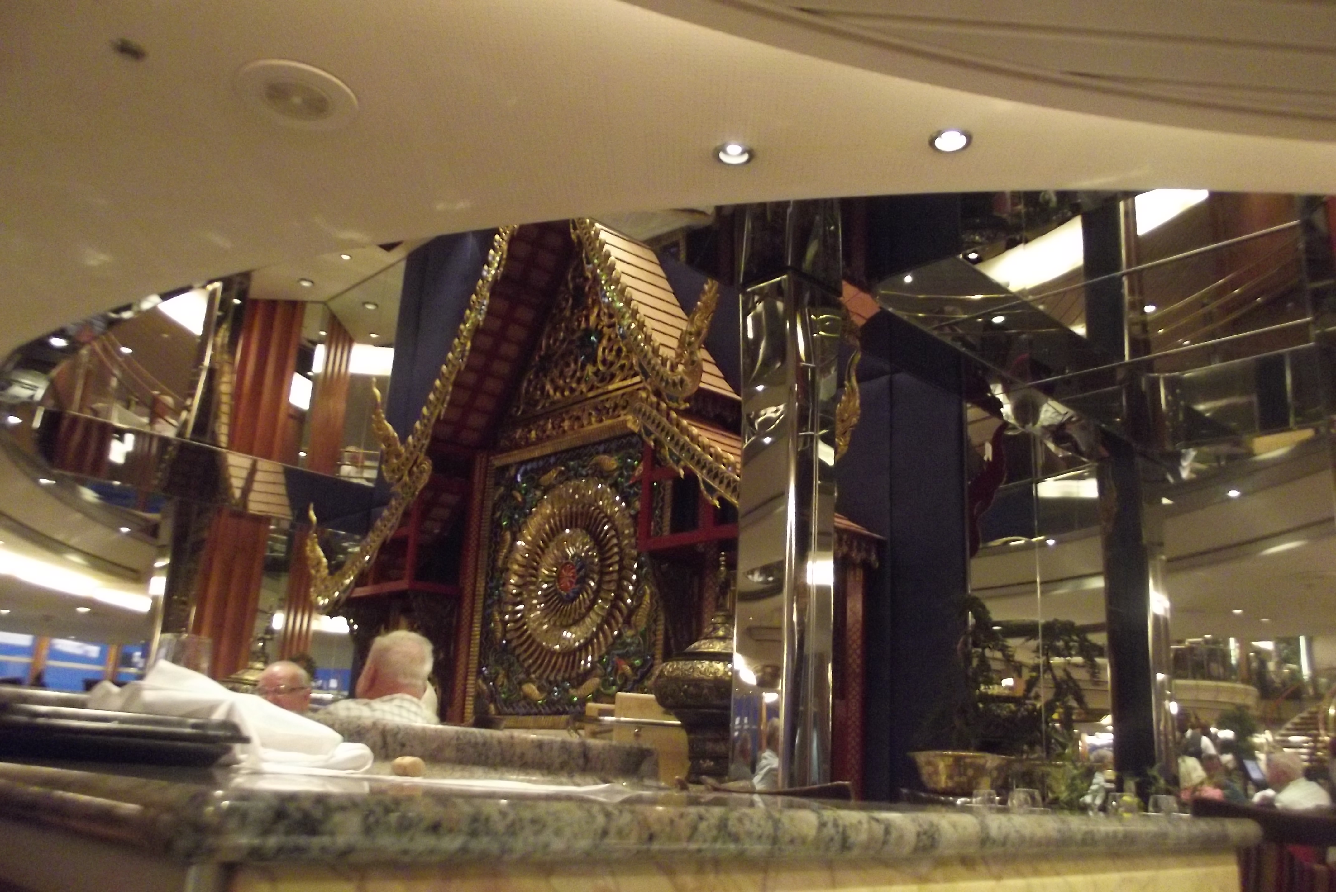 Arriva l’ora di cena e il ristorante “The King and I” ci aspetta, con l’elegante tavolo per due che ci è stato assegnato. Gli interni sono veramente spettacolari e cenare qui è sempre stata una piacevole sorpresa, giorno dopo giorno. Il rollio della nave concilia l’appetito devo dire. Ogni sera un abito diverso, è stato anche un modo per sfoggiare qualche capo indossato poche volte, come per esempio per la serata di gala con il capitano. Antipasto, piatto principale e dolce, è stato sempre tutto ottimo e servito con estrema precisione dai due nostri camerieri simpaticissimi e professionali: il balinese Putu e la brasiliana Fernanda. Che bei ricordi!!! Potessi incontrarli ancora!!! Ci siamo trovati talmente bene che non abbiamo provato i ristoranti di specialità Izumi, con cucina giapponese e Chops Grille, con piatti di carne. Sarà per la prossima volta!!!