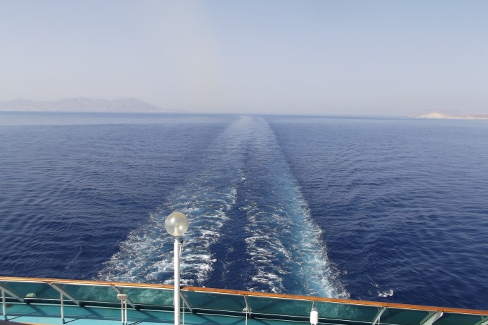 Nel giorno di intera navigazione invece, il tempo è stato scandito anche da passeggiate sulla pista da jogging, per ammirare il mare e l’orizzonte, per rinfrescarsi all’aria aperta, con la brezza marina. Foto a volontà, con le scie della nave… Beh, quelle anche durante i giorni di escursione, dove ogni paesaggio catturava l’attenzione e rapiva il cuore.
