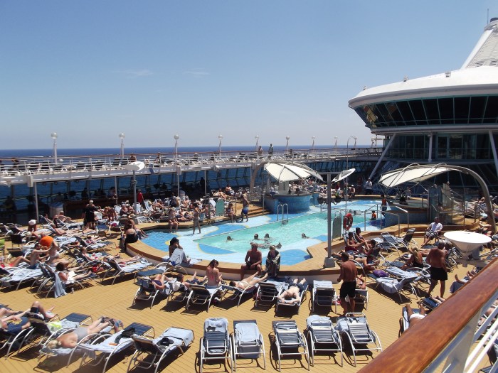 Dopo colazione, il relax in piscina ci sta… Spettacoli, interpretazioni degli animatori, divertimenti oppure semplice tranquillità, si può scegliere qualsiasi cosa. E’ bello stare all’aperto, cullati dalla leggera brezza che rende piacevole la tintarella. I teli mare a bordo fanno sì che non si debbano portare cose superflue da casa, una vera pacchia. Scegliere tra piscina con acqua fresca ed idromassaggio è dura vero? Beh, c’è tutto il tempo per provare entrambi e passare delle piacevoli ore in meditazione. I dispenser di acqua, succo di mela e limonata sono presenti in ogni angolo della nave, per un po’ di freschezza. Per le altre bevande si possono acquistare dei pacchetti in base alle proprie esigenze. In ogni caso non manca mai nulla!!!
