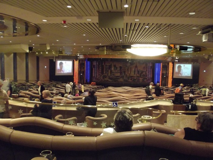 Dopo cena le alternative sono davvero tante: gli spettacoli a teatro, cabaret al lounge, discoteca al ponte più alto della nave (solo una volta è stata allestita sul ponte piscina, in occasione di una serata particolare), casinò… Gli spettacoli al lounge, visibili anche dai ponti superiori, sono sempre stati divertenti ed entusiasmanti. Risate e ancora risate, soprattutto durante la serata dedicata ad Elvis. In discoteca il dj ha sempre mixato pezzi che scatenano dei ricordi in tutti noi. Luci psichedeliche in mezzo al mare e balli scatenati. C’è stata anche la serata rilassante, quella in cui abbiamo giocato a minigolf. Non è molto facile con il vento, ma è sicuramente un modo divertente per provare tutto quello che ha da offrire la nave.